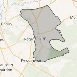- Розташування муніципалітету Версіньї на мапі Франції та сусідні муніципалітети