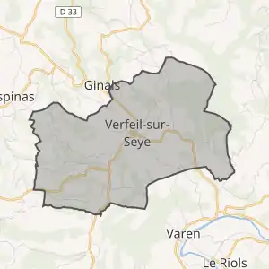 - Розташування муніципалітету Верфей на мапі Франції та сусідні муніципалітети