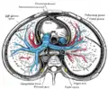 | Верхня порожниста вена бере початок з лівої та правої плечеголовної вени та впадає у праве передсердя | |