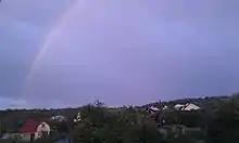 Весе́лка, також ра́йдуга[1] (очевидно, від прасл. *radǫga[lower-alpha 1][2]) — оптичне явище в атмосфері, що являє собою одну, дві чи декілька різнокольорових дуг (або кіл, якщо дивитися з повітря), що спостерігаються на тлі хмари, якщо вона розташована проти Сонця. Червоний колір ми бачимо з зовнішнього боку первинної веселки, а фіолетовий — із внутрішнього.