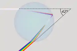 Схема заломлення світла у водяній краплі (для первинної веселки)