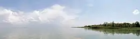 Частина берега укріплена насадженнями білої акації, у північній і східній частинах водосховища розташовані рисові системи[3].