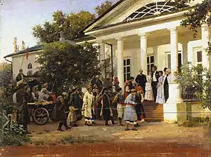 Традиційне весілля східних слов'ян являє собою давній обряд, що йде ще з князівської старини. Весільне святкування уподібнювалося князівському бенкету, тому наречені йменувалися князем і княгинею[1][2], а гості — їхніми приближеними, і товариші нареченого величалися «боярами» чи «дружками» (відсилання до дружинників).