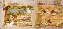 ![]() Частина індійського рукопису «Шалікотра», що описує методи лікування коней |