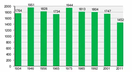 За даними перепису населення 2011 року у селі проживали 1452 особи.