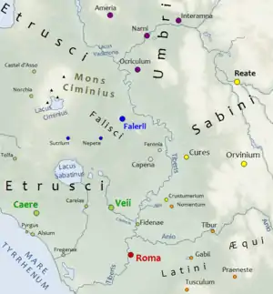 Веї завдяки близькості до Тибру і його торговим шляхам до внутрішніх районів, якою була Фламінієва дорога, закріпила його розвиток та процвітання, але також поставили його в конкуренцію з Римом за владою над Лацієм.