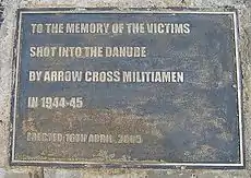 Масові розстріли євреїв в Будапешті проводилися членами угорської нацистської партії «Схрещені стріли» в кінці Другої світової війни, в 1944 — початку 1945. Щоб не займатися похованням, нацисти розстрілювали жертв на березі річки, для економії куль сковуючи ланцюгом 50—60 людей і стріляючи тільки в першого — падаючи, він тягнув за собою інших[1].