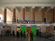 На першому поверсі 2-поверхової будівлі вокзалу розміщені головна зала та касова зала приміського сполучення, довідкове бюро, вікно чергового по вокзалу, магазин друкованої продукції, кондитерських виробів, довідкові і платіжні термінали, банкомати, табло з розкладом поїздів, камери зберігання та туалети. Також на першому поверсі є турнікети, що контролюють прохід до поїздів приміського сполучення. Другий поверх являє собою балкон за периметром головної зали, на якому встановлені місця для очікування. Також на другому поверсі є касовий зал дальнього сполучення та відділення митно-прикордонного контролю.