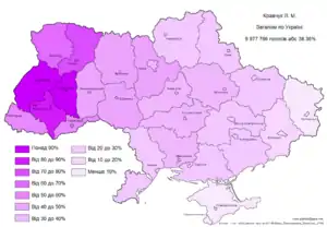 | Тернопільська | 91,0 | 2,6 | 1,1 | 2,6 |