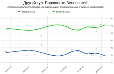 | Центр Разумкова | 21.03.19 – 26.03.19 | 22,7 | 36,5 | 31,2 | 9,6 |