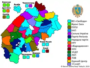 - Попередні результати виборів до Львівської міської ради за мажоритарними округами