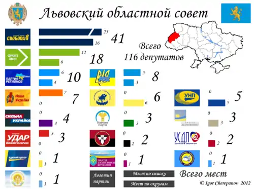 - Результати партійного голосування до Львівської обласної ради: набільше у "Свободи" - 306 649 голосів, найменше у "Правди" - 465