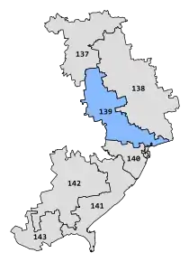 Станом на 22 січня 2021 року виборчий округ №139 складався з виборчих дільниць під номерами 510222-510223, 510230, 510237-510238, 510241-510243, 510246, 510248-510249, 510252, 510257, 510263-510265, 510268-510269, 510276-510277, 510319-510343, 510499-510520, 510523, 510727-510761, 510894-510912, 511064-511072, 511366-511373, 511443 та 511452.