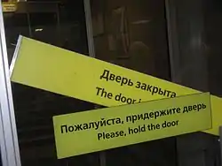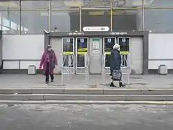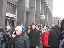 | Люди біля закритої станції метро «Петроградська» | Двері вестибюля станції метро | Поблизу закритої станції метро «Ломоносовська» |