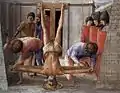 Зазвичай використовувалося як попереднє покарання, щоб змусити мученика відректися від віри. Часто після бичування мученикові відсікали голову. Приклад — Свята Варвара.