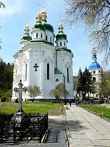 Храм Преображення Господнього трапезна (ліворуч), Михайлівський собор (центр)