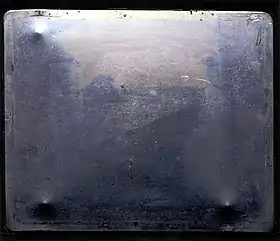 Технологія Ньєпса мало схожа на сучасну аналогову фотографію й більш близька до друкарських фотомеханічних процесів[7]. Шар бітуму, частково полімеризований під дією світла, погано розчиняється в суміші лавандової олії і вайт-спіриту, в якій платівка оброблялася після експозиції. Навпаки, бітум неекспонованих ділянок змивається цією сумішшю, оголюючи поверхню пластинки, яка потім протравлюється кислотою. Обробка закінчувалася зняттям залишків бітуму за допомогою спирту і промиванням[8]. Протруєні неекспоновані ділянки поверхні змінювали свою структуру, набуваючи здатність утримувати друкарську фарбу, якою і робились відбитки на папері. Поверхня отриманого таким способом кліше виглядає майже однорідною, лише незначно змінюючи ступінь відбиття світла на протруєних ділянках. В даний час оригінал знімка знаходиться в Дослідницькому центрі Гаррі Ренсома в місті Остін, штат Техас[9]. Він поміщений в спеціальний кейс, наповнений безкисневою газовою сумішшю, що уповільнює старіння[10].