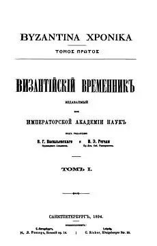 «Византийский временник» був заснований у 1894 році видатним російським візантиністом академіком Василем Григоровичем Васильєвським і видавався у Санкт-Петербурзі. До 1916 року вийшло 22 томи об'ємом в середньому по 800 сторінок кожний. В цей період у журналі, крім власне історичних, було багато текстів, присвячених релігійним питанням, а особливо історичному та духовному зв'язку між Візантією та Руссю.[1]