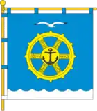 На синьому полі золоте колесо з шістьма спицями у вигляді колосків по середині якого якір з двома лапами, над якими вгорі срібна чайка з червоним дзьобом і лапами, що летить та внизу срібною шиповидною хвилею. Щит розміщений у золотому картуші та увінчаний золотою сільською короною.[1]