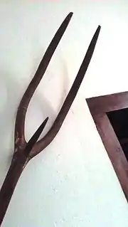 «Бойовою модифікацією» вил можна вважати тризубець і бойовий рогач.