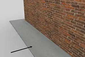 Вимощення виконують на власному фундаменті — утрамбованому щебені по ущільненому фунтовому покриву (глиняний замок) за допомогою бетонного чи асфальтобетонного покриву. Зазвичай поверхня вимощення розташована під тупим кутом до стіни — щоб під стінами не збиралася дощова вода.