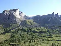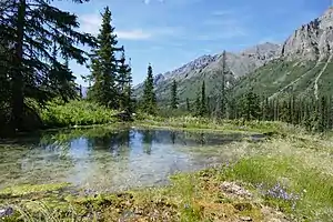 На нижчих висотах знаходяться екорегіони: Тайга Північно-Західних територій на півночі та Сухі ліси внутрішніх районів Юкона на півдні. [2]