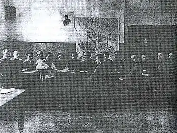 - 3-го липня ст. ст. 1917 р. в Києві на Златоустівській улиці в помешканні початкової школи відбулось історичне засідання з ініціативи полуботківців. На це засідання біля 9-ї години вечора прибули: представники полуботківського полку поручник Романовський, бунчужний Бондаренко та інші старшини й козаки, старшини Богданівського полку на чолі з командиром того полку полковником Капканом, який був разом з тим членом Генерального комітету, адютант полк. Капкана пор. Шаповал (…), штабс-капітан Ластівченко, прапорщ. Каленіченко, поручн. Демуцький та інші, також сотенні ради й козаки».[6]