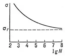 Залежність між рівнем навантаження (напруги) s і числом циклів N, відповідним руйнуванню, представляється графічно у вигляді кривої втоми. Межею витривалості sr називається напруга, відповідна руйнуванню при заданому, великому числі циклів або, — горизонтальній асимптоті кривої втомі.