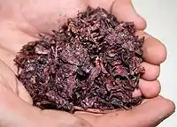 Оеноціанін — це природний червоний харчовий барвник, який отримують із виноградних вичавок. Тартрати (гідротартрат калію) і виноградні поліфеноли також можна виготовляти із виноградних вичавок.[6]