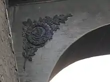 Один із чотирьох радянських барельєфів (демонтовані 2016) на залізничній естакаді над Вишгородською вулицею