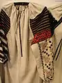 Русинка з Мармарощини (1803 p.)"Сорочку вони носять з льону, вишиту біля шиі, на грудях, на плечах червоною барвою. Рукава сорочки шиті лиштвою в дірочки та вишиті великими червоними квітами."
