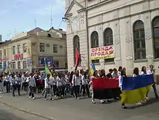 Вишиванка-фест 2012. Герої не вмирають, вмирають вороги! Марш учасників повз приміщення педуніверситету, де була тюрма та катівня НКВС.