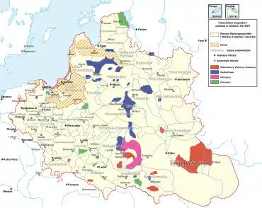 Родовим гніздом в. було місто Вишнівець на півдні Волині. Володіння Вишневецьких спочатку знаходилися переважно на Волині, а з 80-х рр. XVI ст. ще й на Лівобережній Україні (Лубенщина, Роменщина та ін., переважно це були колишні землі князів Глинських та Домонтів)[1], так звана Вишневеччина. Починаючись при Дніпрі біля Чигирина та Домонтова при гирлі Супоя, володіння Вишневецьких простягалися майже до Конотопа. До їх складу входили нинішні міста: Полтава, Хорол, Лубни, Золотоноша, Пирятин, Лохвиця, Ромни і заштатне місто Глинськ з містечками і селами, всього на лівому березі Дніпра 53 міста і села і 3 села на правому березі. За інвентарем 1641 року значилося у вотчині 39837 господарів; крім того, було безліч економічних хуторів, або фільварків[2].