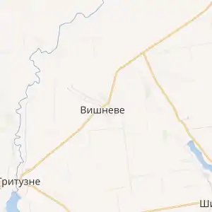 Село Вишневе розташоване за 2 км від річок Суха Сура і Тритузна, на відстані 2 км від сіл Тритузне і Широке. По селу протікає пересихаюча Балка Дідова із загатою.