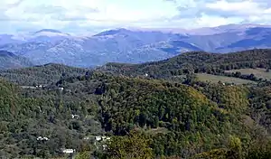 ![]() Східна околиця Вишоватого (вдалині справа — гора Апецька) | |