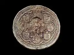 - З великої печатки: лат. S[igillum] Wladislaus Dei Gra[tia] Rex Polonie n[ec]no[n] t[er]raru[m] Cracovie Sa[n]domi[ri]e Syradie La[n]ci[ci]e Cuyavie Litwanie p[ri]nceps sup[re]m[us] Pomoranie Russieq[ue] d[omi]n[u]s et h[e]r[e]s e[tc] (Печатка Владислава, Божою милістю, короля Польщі, а також земель Кракова, Сандомира, Серадзя, Ленчиці, Куявії, верховний князь Литви, господар і дідич Померанії, Русі та інших)