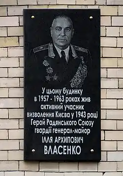 - В Києві на будинку № 4 по вул. Лаврській, де мешкав Герой, встановлено меморіальну дошку.
