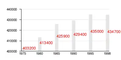 | - повне | 403 200 осіб (1975), 413 400 осіб (1980), 425 900 осіб (1985), 429 400 осіб (1990), 435 000 осіб (1995), 434 700 осіб (1998) |