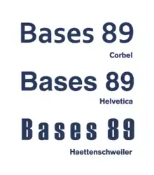 Текст набраний трьома шрифтами з різними апертурами: Corbel (зверху), Helvetica (посередині) та Haettenschweiler (знизу).