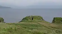 Три кам'яні вогнища та сліди червоної вохри, знайдені на острові Джура та датовані 6000 р. до н. е., є найбільш ранніми кам'яними спорудами, знайденими на поточний момент у Шотландії.[29][30] Однак в цілому неолітичні ділянки на Внутрішніх Гебридах значно менш масштабні та вражаючі від ділянок на Оркні та Західних островах.[Note 2] Збереглися численні ділянки Залізної доби, включаючи залишки форта Дун Рінгілл на острові Скай, який за поземним планом схожий одночасно на брох і на складний атлантичний круглий дім.[31]
