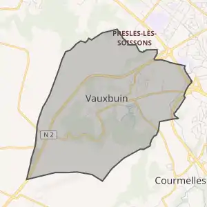- Розташування муніципалітету Вобюен на мапі Франції та сусідні муніципалітети