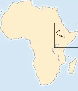 | Ареал ефіопського вовка (Ефіопське нагір'я) | |