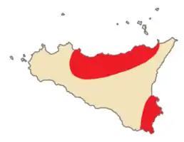 ![]() Поширення вовка на Сицилії у 1900 році | ||||||||||||||||||