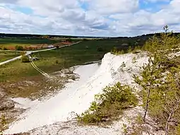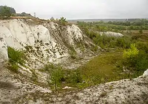 Рельєф місцевості сильно розчленований. Схили долини річки Вовчої є різко асиметричними. Правий схил досить крутий, з оголеннями крейдяних порід, пересічений короткими, часто висячими балками і ярами. Відшарування крейди, що виходять на поверхню, неоднорідні і представлені крейдяним щебенем, мергелем і вапняками, рідше виступають у вигляді литої скелі з чистої крейди або великих опуклих «лобів». На вершинах і біля основи схили звичайно покриті опідзоленими ґрунтами різної товщини, в середній частині — чистою крейдяною крихтою, іноді слабо задернованою.