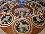 Руота делла Фортуна «Колесо Фортуни» є центральним елементом мозаїчної інкрустованої підлоги Сієнського собору (близько 1372 р.)