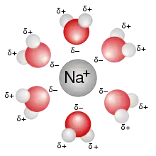 Здатність води ефективно розчиняти полярні й заряджені речовини зумовлена високою діелектричною проникністю, її діелектрична стала при температурі 25 °C становить 78,5 (для порівняння діелектрична стала неполярного розчинника бензену при тій же температурі 4,6). Це означає, що вода може ефективно екранувати електростатичні взаємодії між розчиненими іонами. Наприклад, під час розчинення хлориду натрію молекули води утворюють гідратні оболонки навколо іонів Na+ і Cl-, таким чином стабілізують їх, частково нейтралізують їхні заряди, і не дозволяють взаємодіяти одне з одним утворюючи кристали[8].