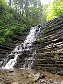 | Крапельковий | Надвірнянський район | 48°36′13″ пн. ш. 24°22′15″ сх. д. | Висота 10 м. На невеликому потоці, який є лівою притокою річки Бухтівець. Легкодоступний, популярний туристичний об'єкт. | ![]() |