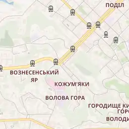 | Автобуси | А 53, 72, 119 (всі — по вулицях Верхній Вал та Нижній Вал) |