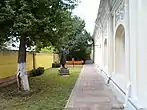 У кінці XVIII — початку XIX ст. із східного боку монастирської території був побудований двоповерховий корпус. Нижній поверх займали торгові ряди, верхній — бурса (гуртожиток), а з кінця XIX ст. — монастирська школа. Монастир був обнесений високою цегляною стіною. У 1916 р. торгові ряди зі школою згоріли, а їхні рештки були розібрані.