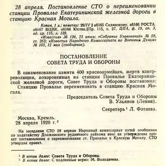 1922 р. — на Братській могилі біля станції Красна Могила відкрито обеліск.